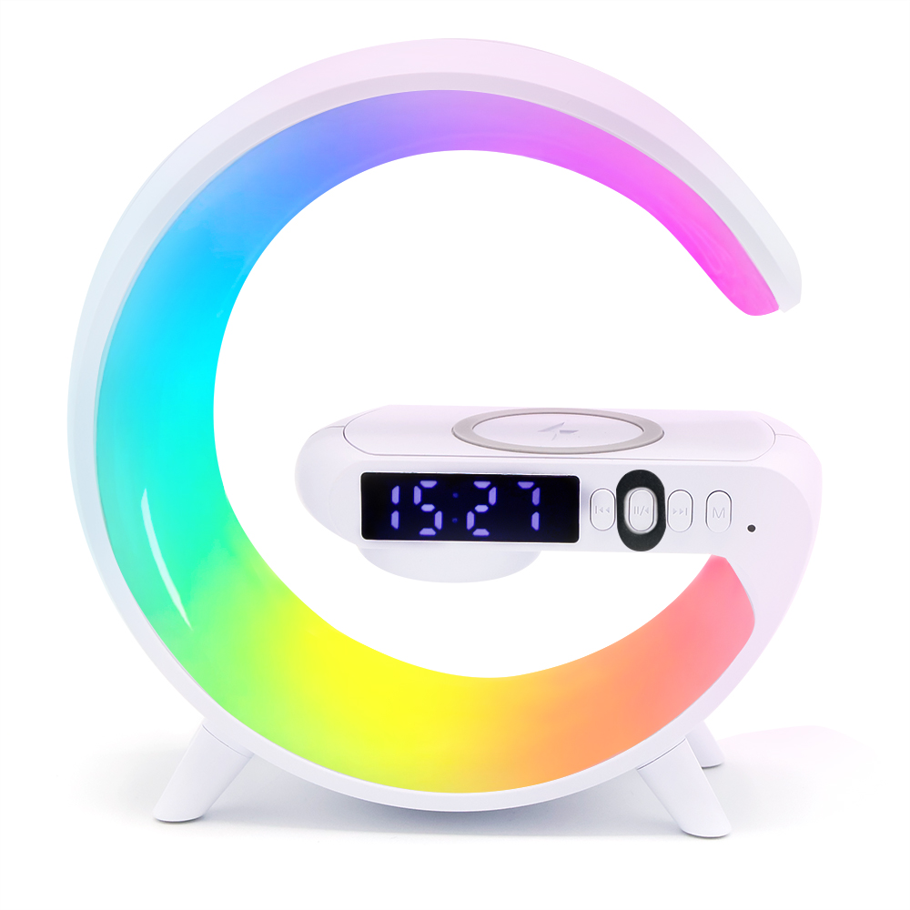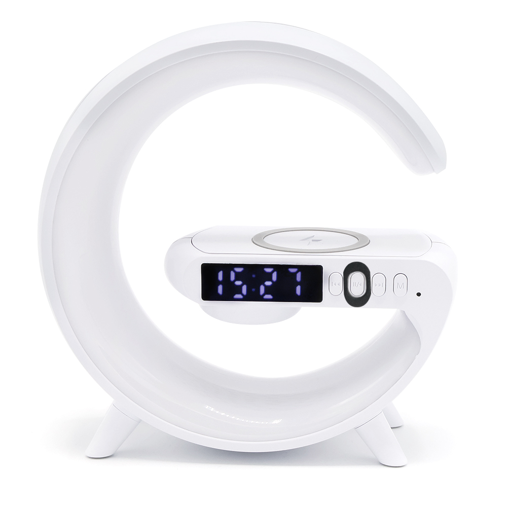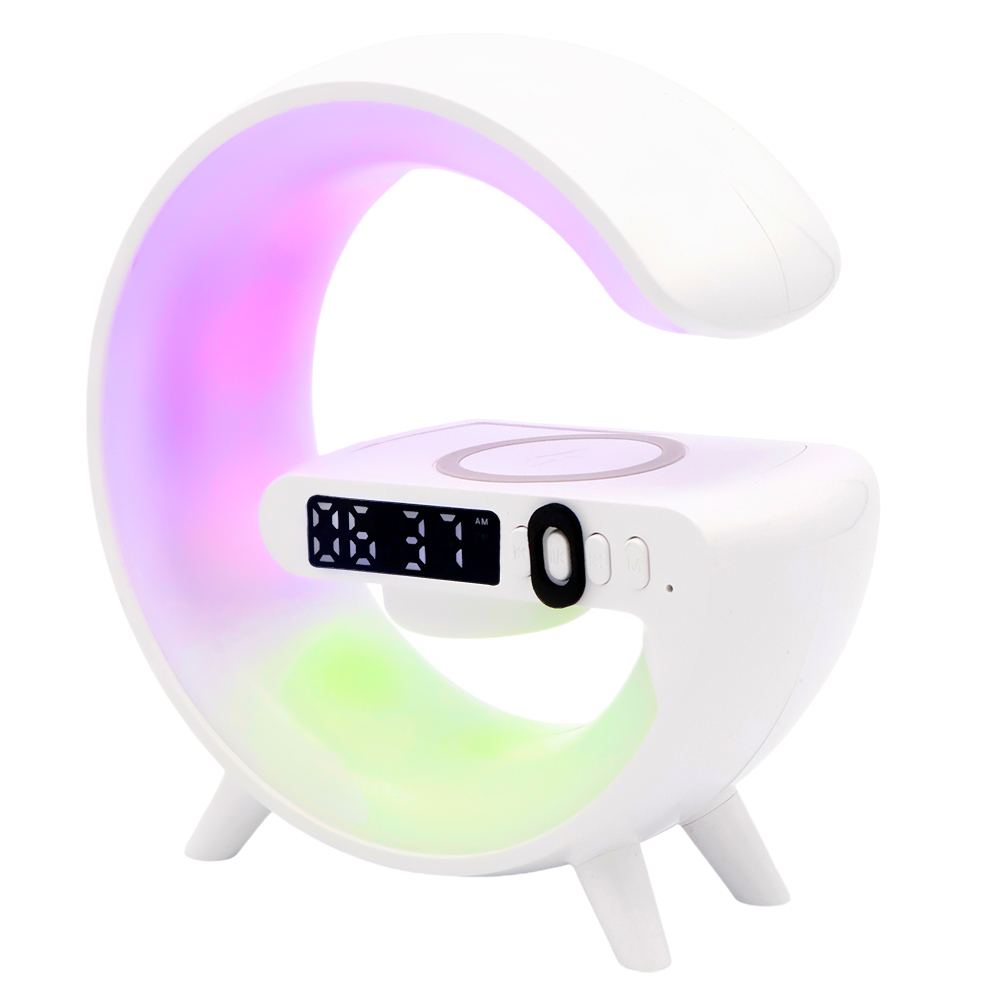 Беспроводная колонка с функцией беспроводной зарядки. Часы, будильник, RGB-подсветка, а так же защитная накладка на кнопке включения являются её особенностями. При остаточном заряде 10-20% подаётся предупреждающий сигнал. Размер: 155*55*160мм Bluetooth: v 5.2 Мощность динамика: 3W Батарея: 3.7V / 300 mAh Время работы: 2-3 Часа Время зарядки: 2,5 Часа Порт зарядки: Type-C Входное напряжение и ток: 5V/2A Беспроводное зарядное выход: 5W. ¶¶Для работы беспроводной зарядки необходимо подключать устройство к сети через адаптер.