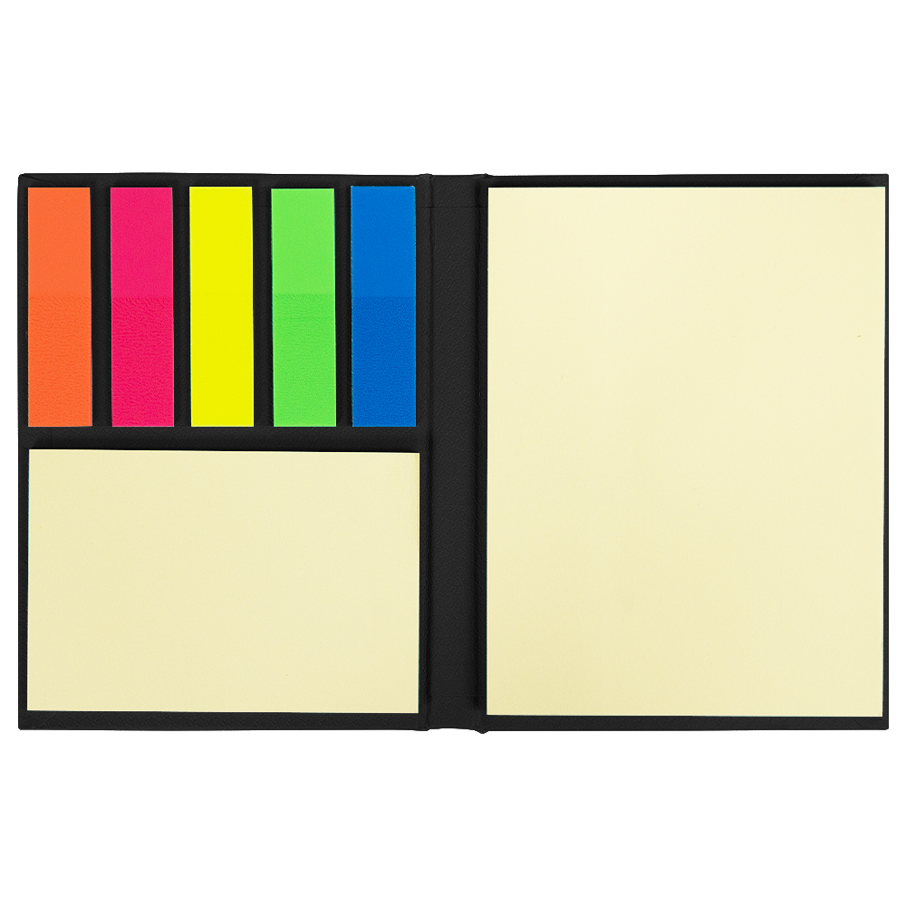 - Клейкие закладки в 5 цветах (размер: 46 × 12 мм) помогут выделить важные моменты в записях.