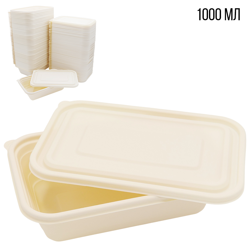 Набор контейнеров с крышкой из кукурузного крахмала, 1000 мл, 50 шт