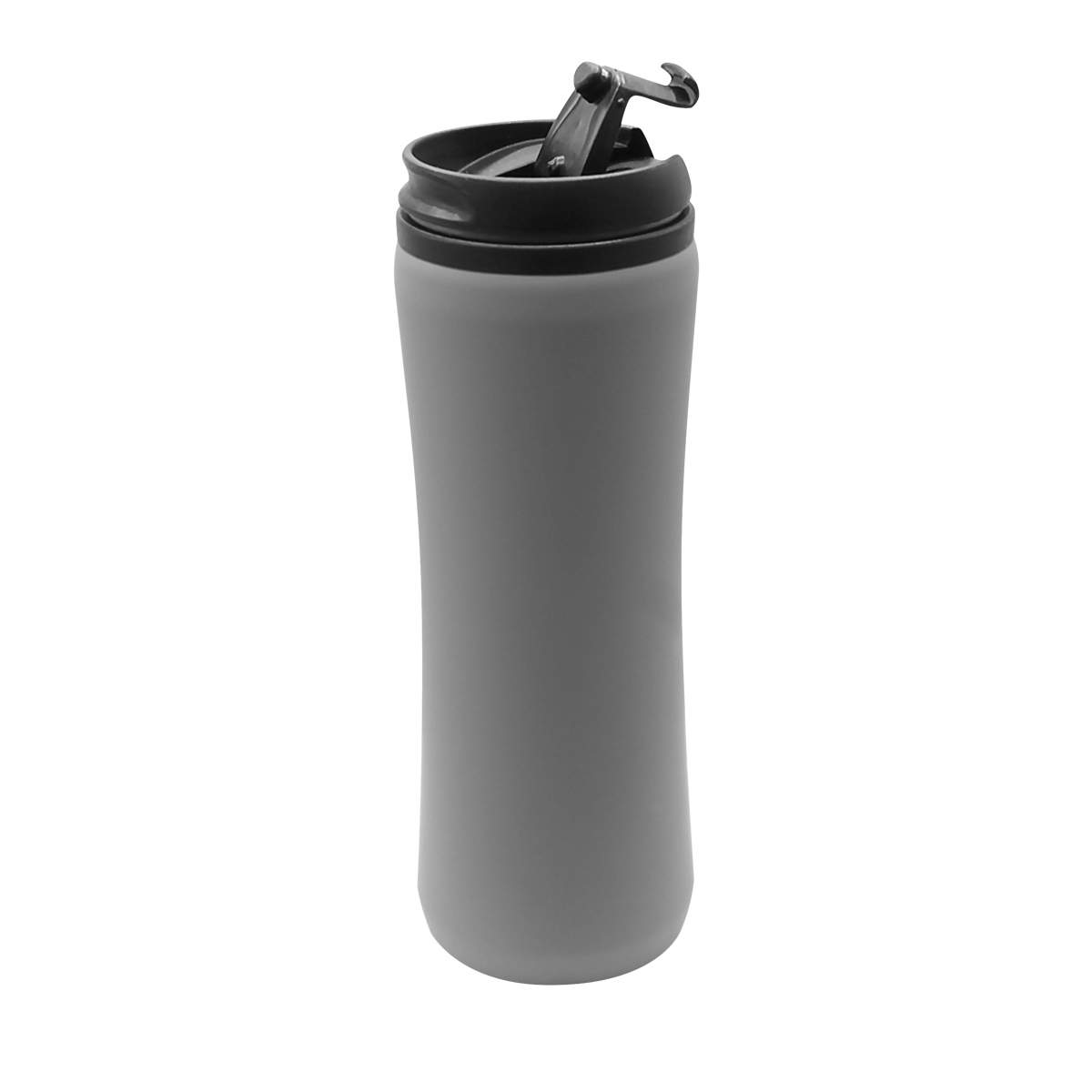 Термокружка изготовлена из нержавеющей стали с покрытием софт тач. Внутренняя колба сделана из пластика. Вакуумная конструкция. Кружка-непроливайка- Силиконовая прокладка и клапан не дают жидкости протечь. Объем термокружки – 500 мл.