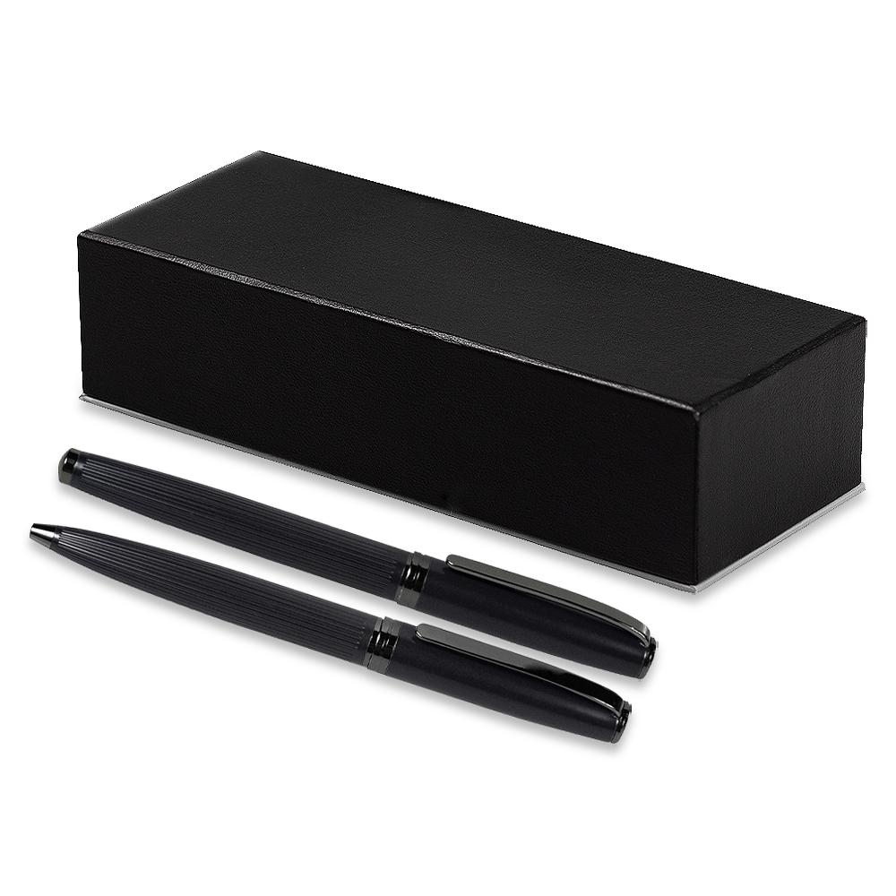 Набор ручек Ontario Solution, черный (ручка шариковая, роллер) в подарочной коробке Emotion, черный